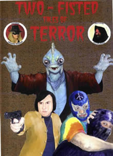 TWO FISTED TALES OF TERROR An anthology of heroes & horror! Join us as we journey with the tough guys & girls who walk the mean streets of Retro City!! first, Dr. Anubis will solve a mystery that will bring him face to face with the "Fangs of the Black Widow". Next,mutilated bodies & missing organs send Madame Magnum on a quest for vengeance in "Attack of the Albino Assassins". Then, Aliens from space & the cult of Dagon plan to enslave mankind & maybe use us for food!! Enter occult investigator,Harry Gross & wrestler turned crime fighter, Mod Mutilator!! They plan to kick ass & ask questions later,hell,maybe they won't even ask questions in "Shadow over Retro City". Guns, Girls & Gore!! This one has it all!! PLUS DVD EXTRAS: DRIVE-IN INTERMISSIONS, PREVIEWS & MORE!! |